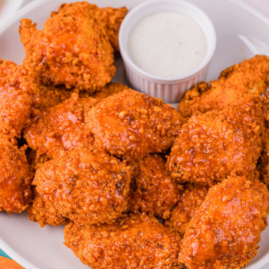 10 piezas de Boneless bañadas en salsa elegir ( BBQ, Mango Habanero o BBQ Búfalo)