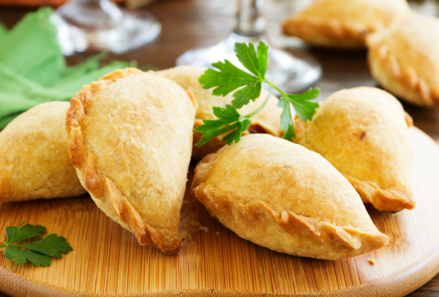 Masa de harina de trigo rellena de Carne molida e res preparada