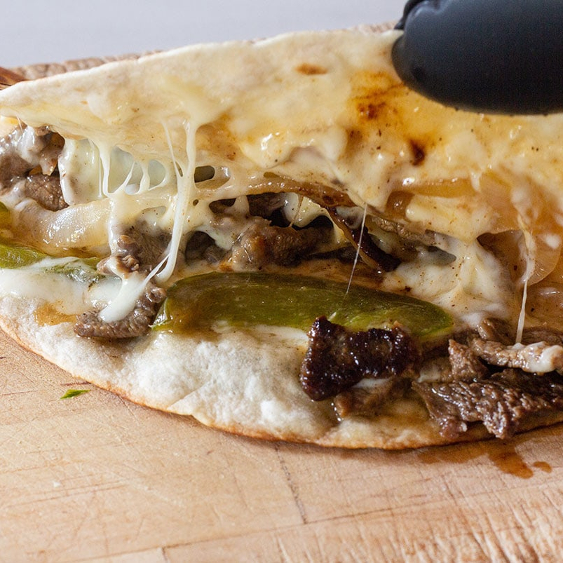 Asada de sirloin con queso manchego en 2 tortillas de harina