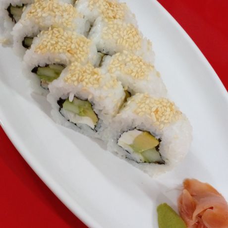 Cangrejo por fuera, aguacate, pepino, queso Philadelphia. (12 bocados)