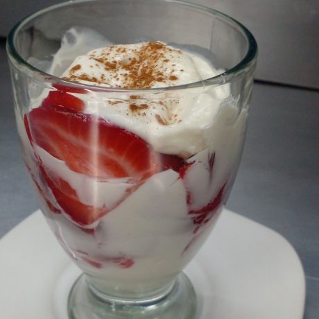 Fresas con crema batida y canela.