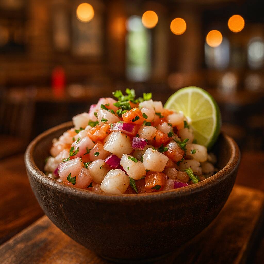 El sabor fresco del mar en su máxima expresión. Preparado con 160 g de filete de tilapia fresco, cortado en cubos y curtido al momento en jugo de limón natural. Mezclado con jitomate maduro, pepino crujiente, cebolla morada, cilantro fresco y un toque de chile serrano picado que aporta equilibrio entre acidez y picor.