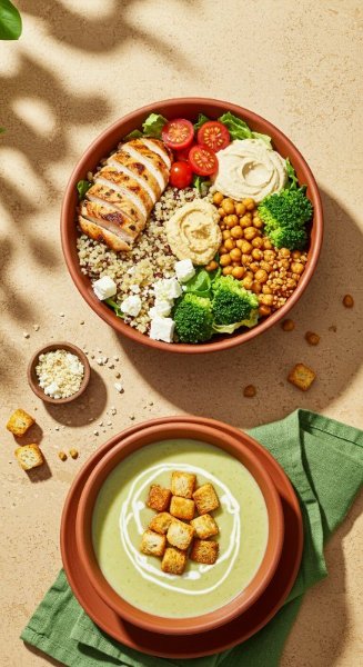 Combo que incluye una Sopa y una Ensalada o Bowl mediano a elección.