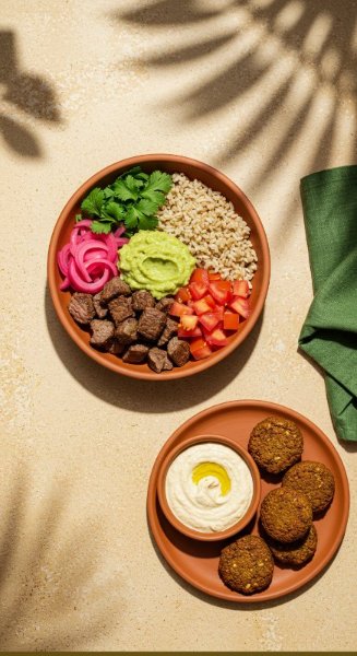 Combo que incluye un Hummus con Falafel y una Ensalada o Bowl mediano a elección.