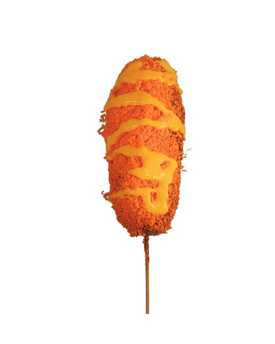 Salchicha frankfurt combinada con queso manchego bañada de masa con cubierta de panko, bañada con el aderezo de su elección.