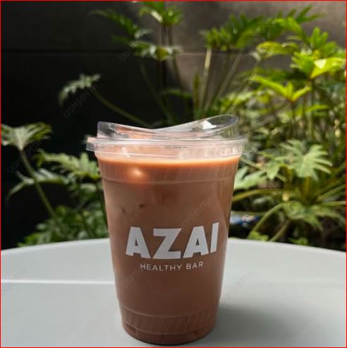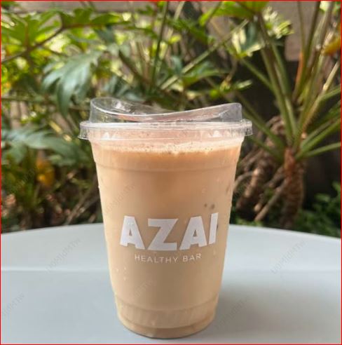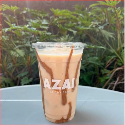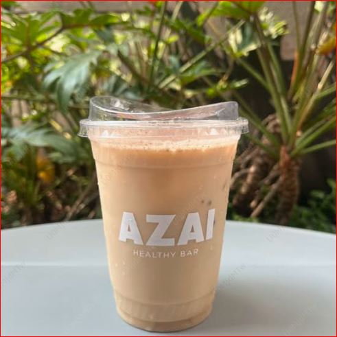 Latte frío con cacao, crema de cacahuate, canela, datil y miel.