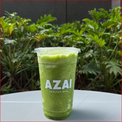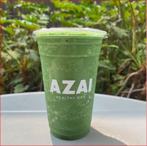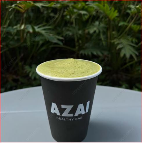 Mezcla: leche de almendra, matcha, proteína vegana de vainilla, espinaca, aguacate, plátano y un toque de miel, toppings: coco, granola y crema de cacahuate.