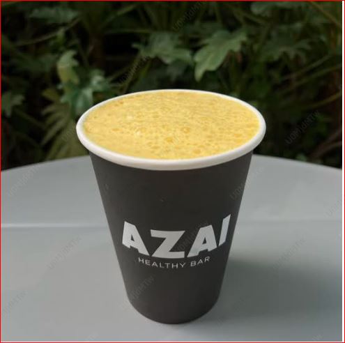 Golden milk (cúrcuma, pimienta, jengibre, monk fruit y leche de almendras sin azúcar) leche de almendras sin azúcar, toque de plátano y proteína vegana.