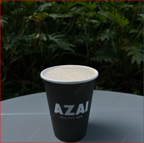 Leche de almendras sin azúcar, cacao, maca, plátano, proteína vegana y toque de almond butter.