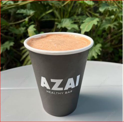 Leche de almendra sin azúcar, mezcla natural de chai, mezcla de crumble (mix de nueces), cacao orgánico, canela, toque de datil y miel