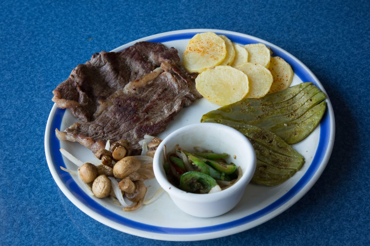 Empanizado, a la mexicana, asado con nopal, arroz.