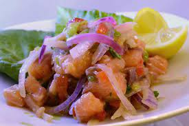 250GR DE SALMON MARINADO CON LIMON CEBOLLA .JITOMATE AGUACATE