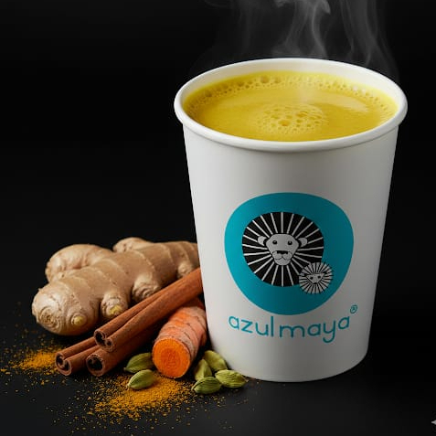Bebida de cúrcuma, jengibre, cardamomo, canela, pimienta y aceite de coco.