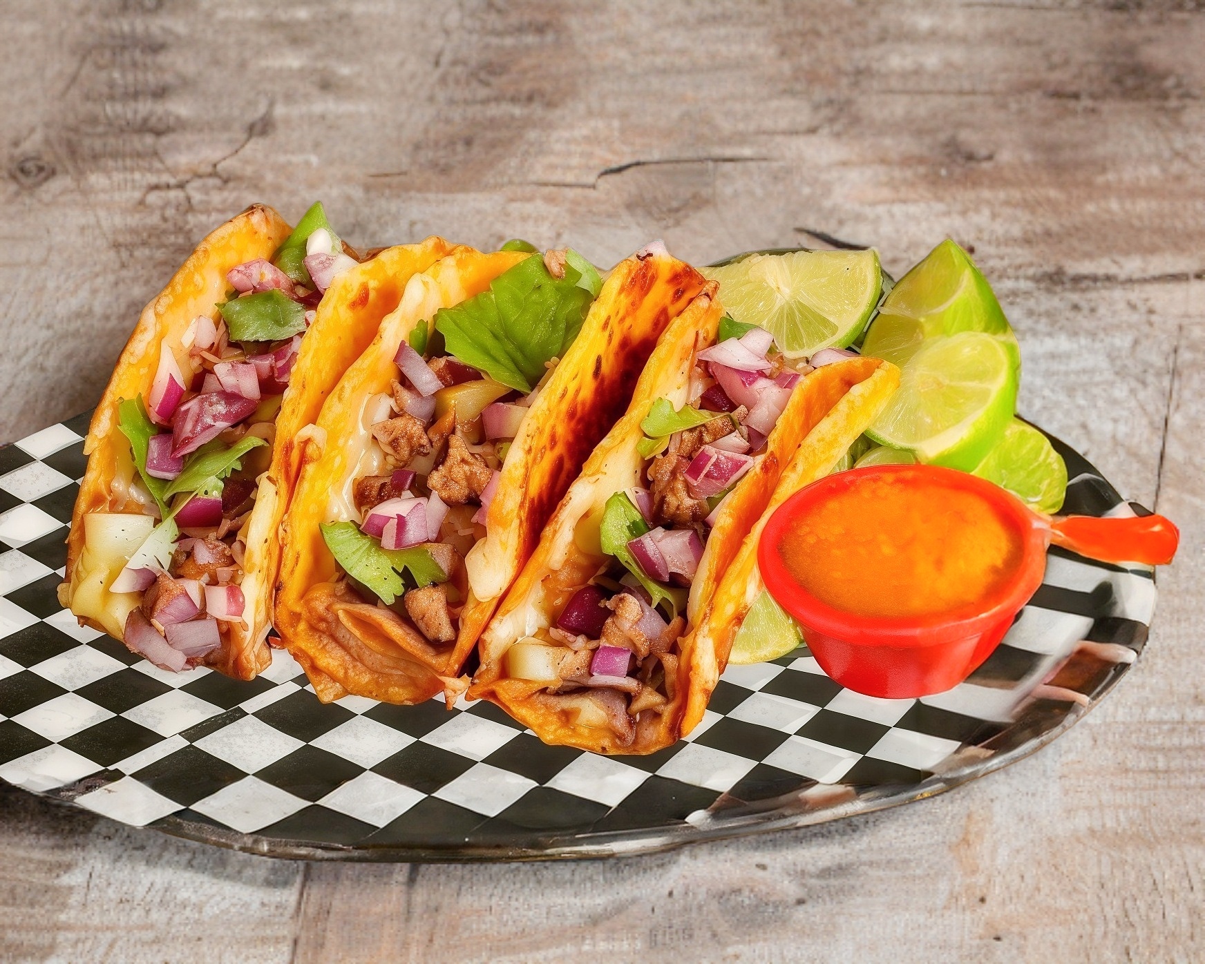 3 Quesadillas de queso Oaxaca adobadas en nuestra salsa secreta rellena de nuestra deliciosa cochinita pibil, se acompaña de cebollita morada curtida, salsa habanero 100% y limón.