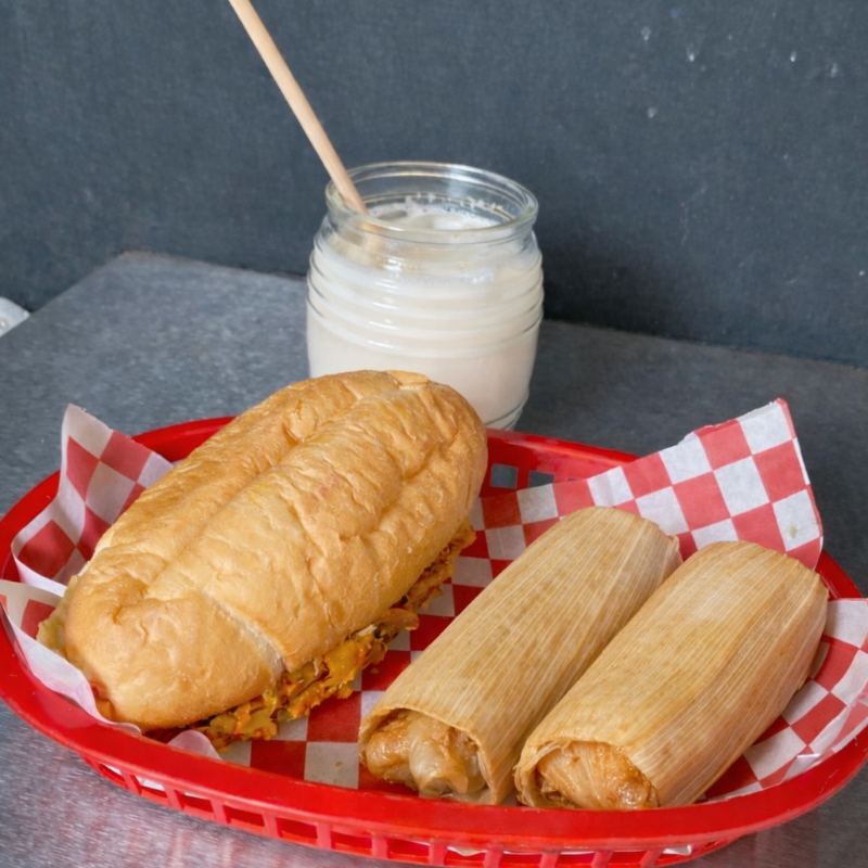 Pakt 8: 1 Torta cochinita + 2 Tamales + Bebida