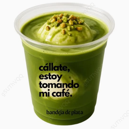 Helado de vainilla, matcha grado ceremonial, caramelo y pistache.q