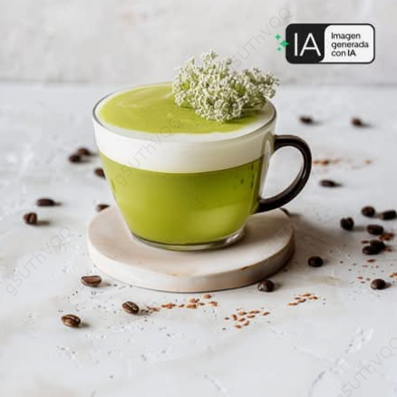 Matcha grado ceremonial,pulpa de mango y leche de avena Oatly.