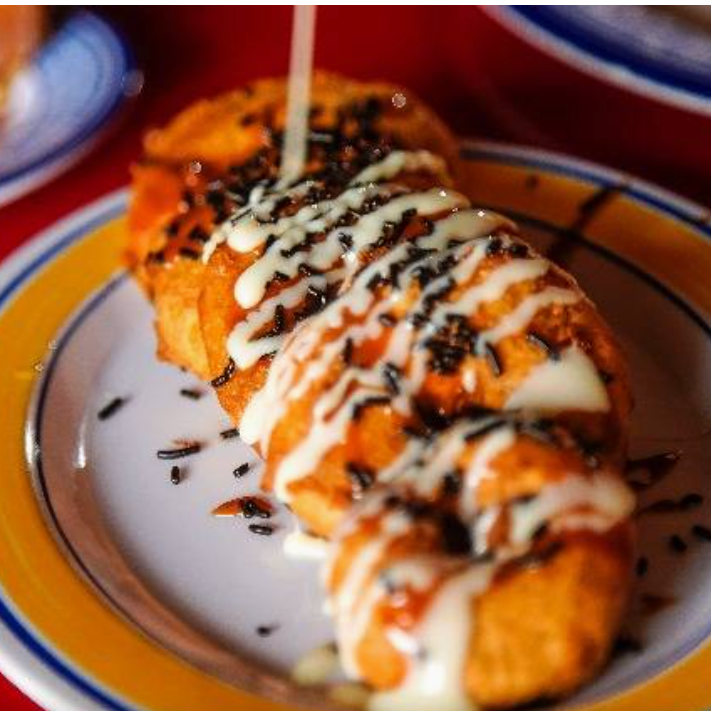 Incluye plátano macho, queso, cajeta, lechera y chispas de chocolate.