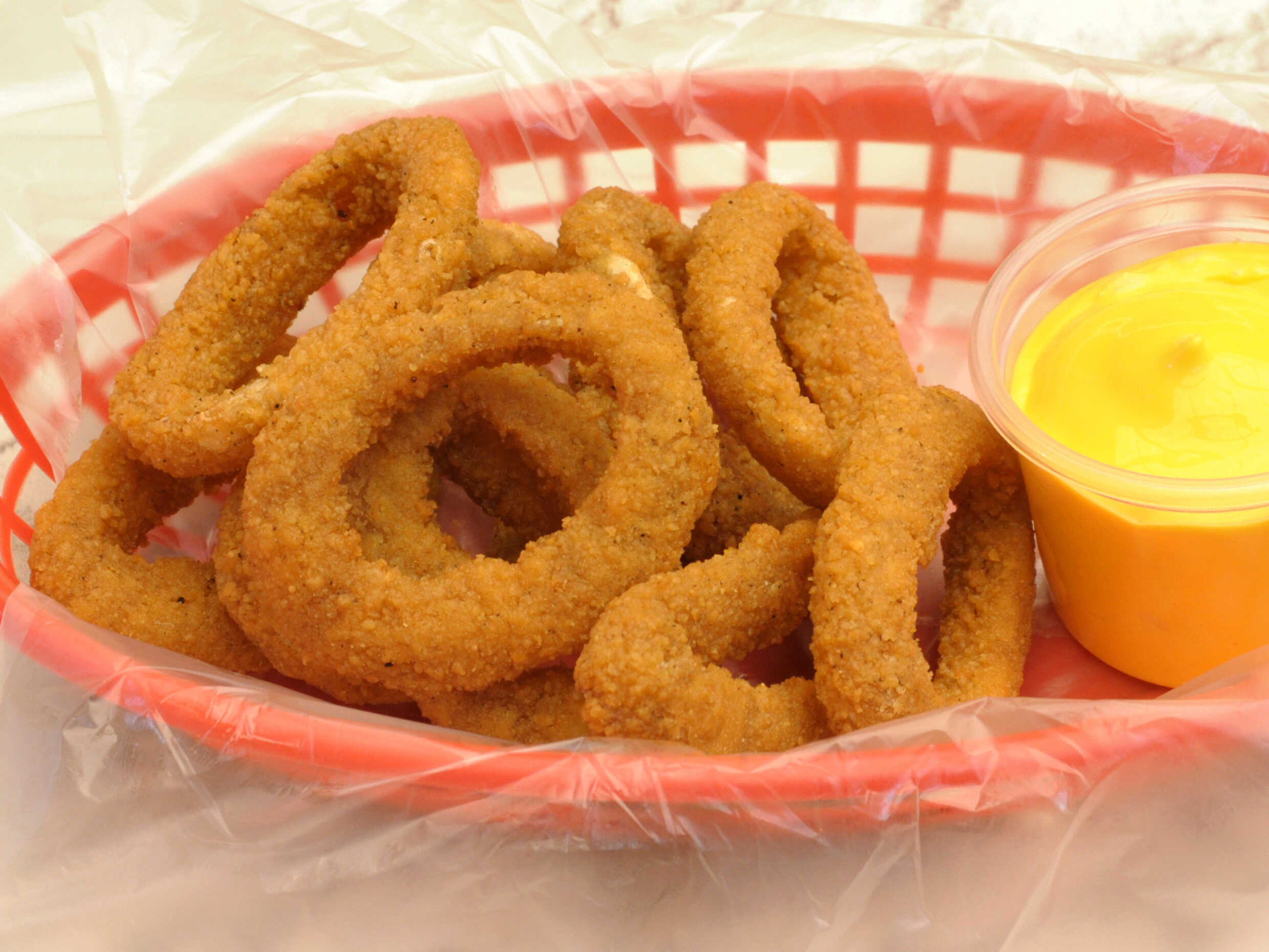 Hamburguesa de res acompañada con queso manchego, aros de cebolla, tocino y salsa BBQ. Acompañada de papas a la Francesa