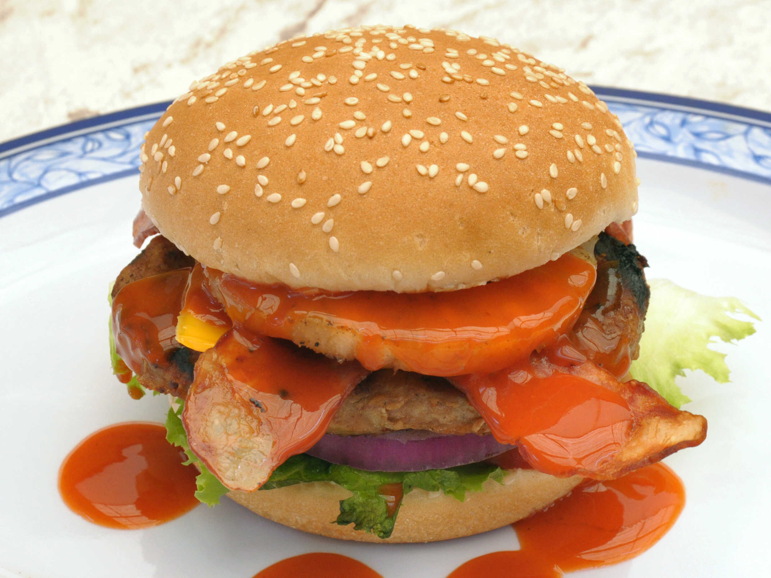 Carne, tocino, queso manchego, y salsa especial de mango con chipotle. Acompañada de papas a la Francesa