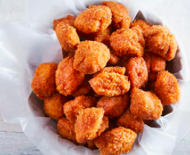 Trocitos de pechuga empanizados y en forma de palomitas 🍿, pruébalos te van a encantar.