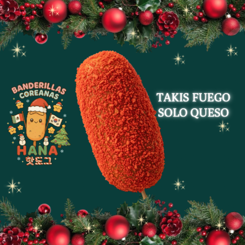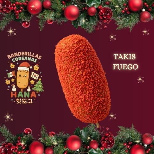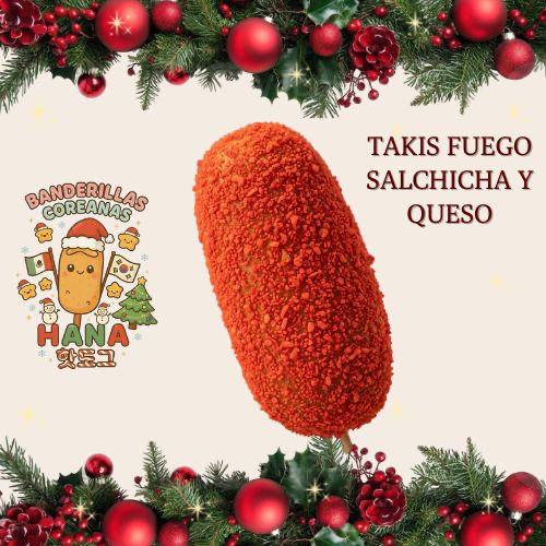 Banderilla de salchicha con queso cubierta de polvo de Takis Fuego muy picoso