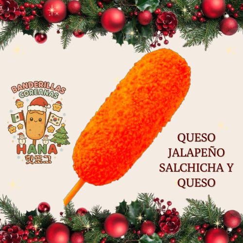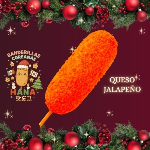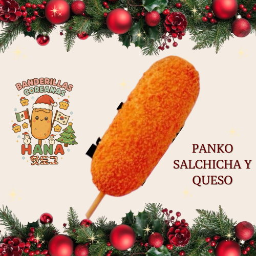 Banderilla de queso con salchicha cubierta de queso jalapeño (polvo) con Panko