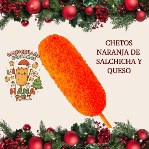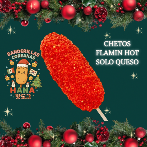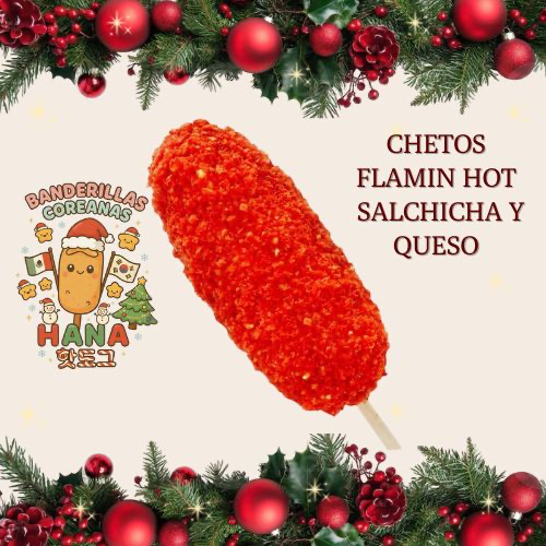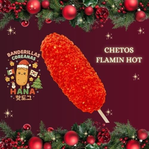 Banderilla de salchicha con queso cubierta de polvo de Chetos Flamin Hot Muy picoso