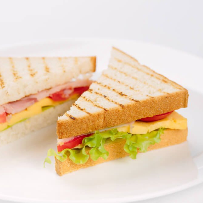 Sándwich de Jamón con, Jamón de pavo, Queso manchego ,Queso panela ,Lechuga ,Jitomate ,Chiles jalapeños