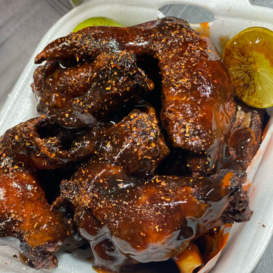 Alitas doradas y crujientes con salsa a elegir incluye (Salsa Inglesa,Salsa Maggi, Salsa Valentina ,Tajin y limon.)