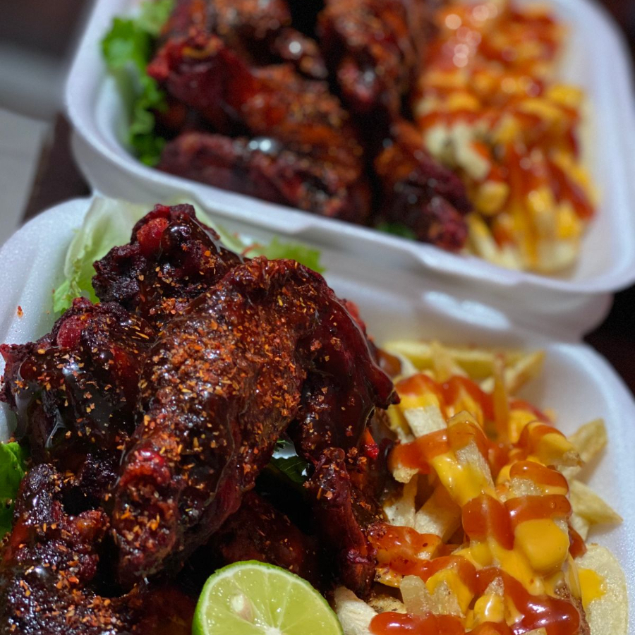 Deliciosas alitas con orden de papas, incluye (Salsa Inglesa,Salsa Maggi, Salsa Valentina ,Tajin y limon.)