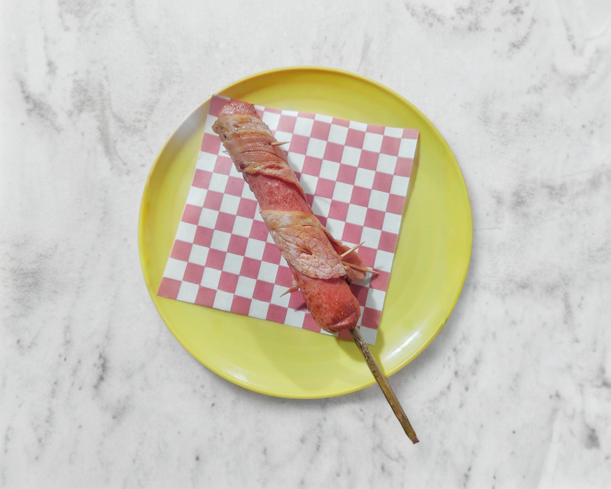 Salchicha jumbo y tocino.
