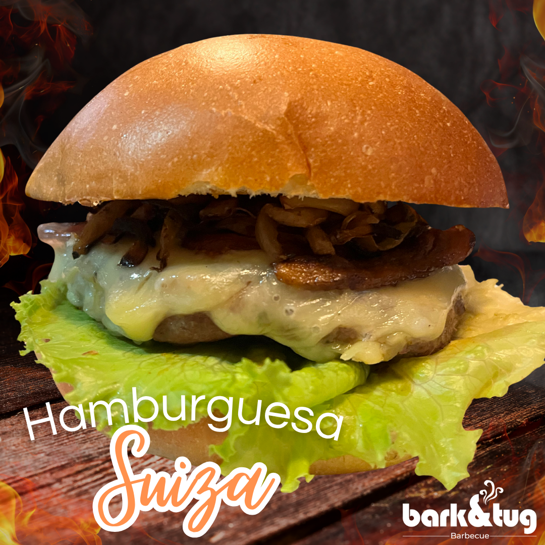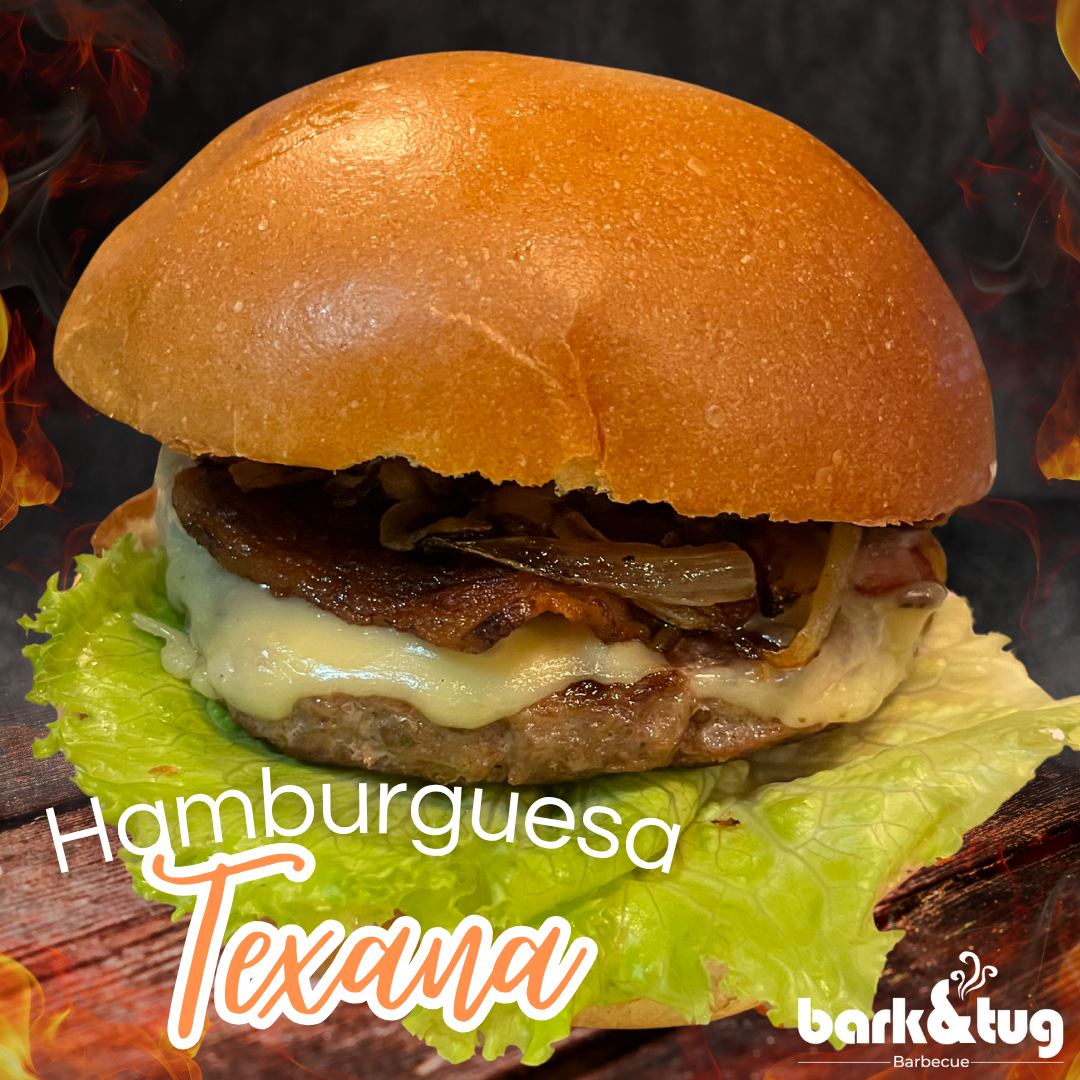 Carne a la parrilla (Brisket 200grs), queso gouda, tocino, cebolla caramelizada y salsa BBQ. Incluye papas a la francesa.