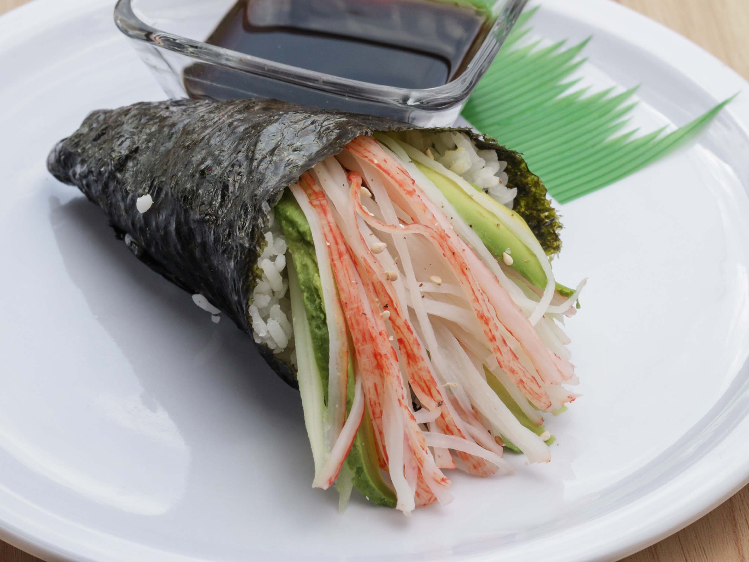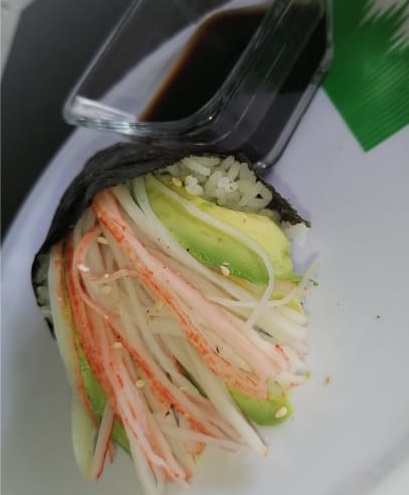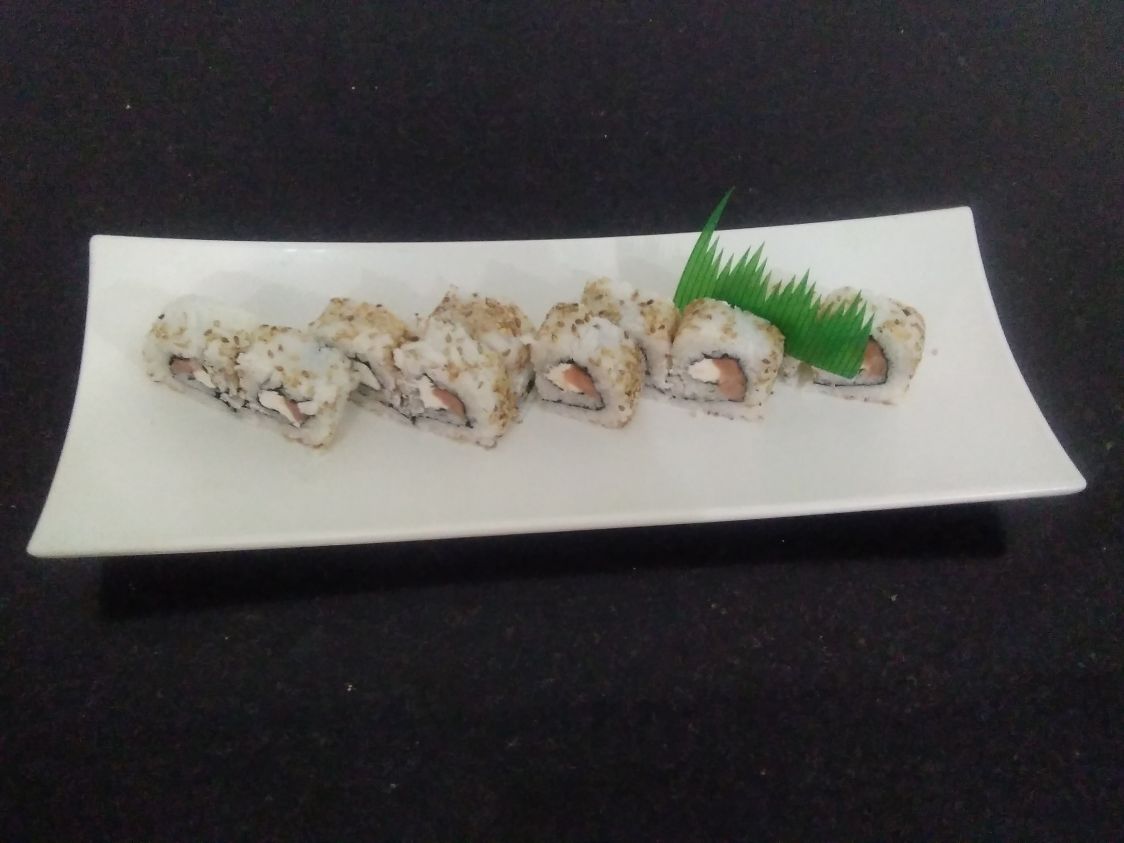 Alga por fuera ajonjolí y por dentro salsa tampico y cangrejo
