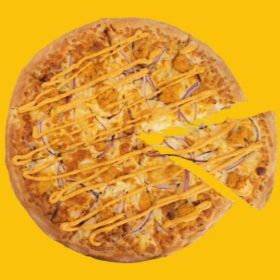 Pizza de boneless de pollo, piña, cebolla y aderezo chipotle.