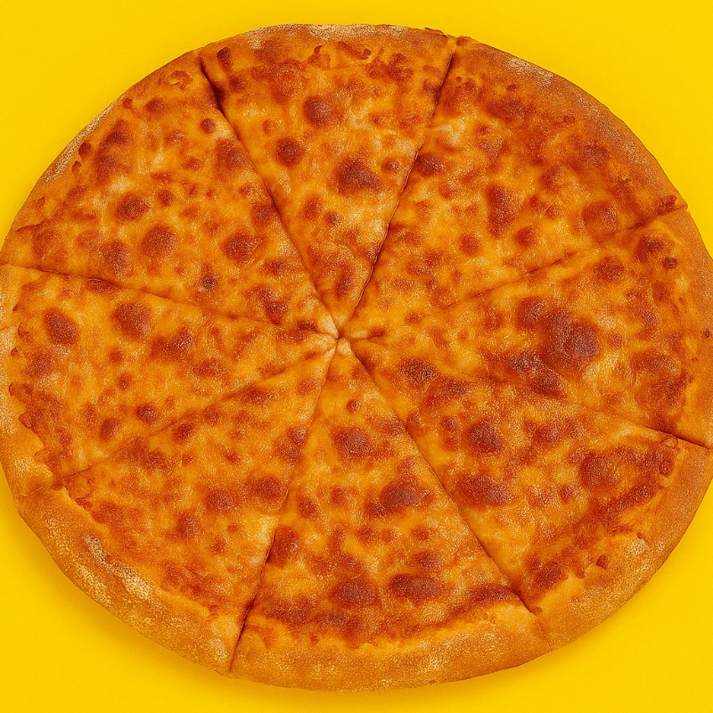 Pizza de queso mozzarella 100% leche, tamaño familiar.