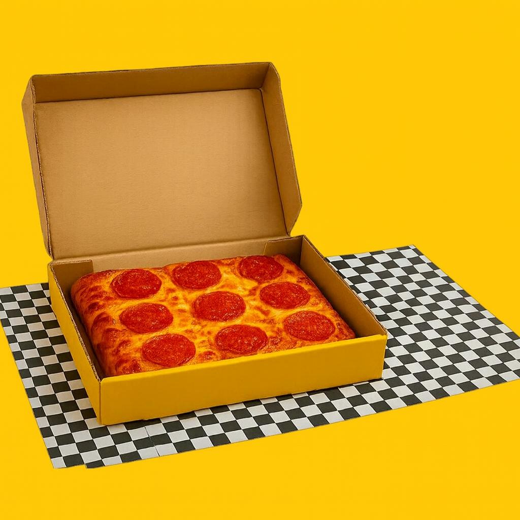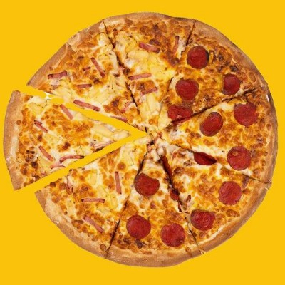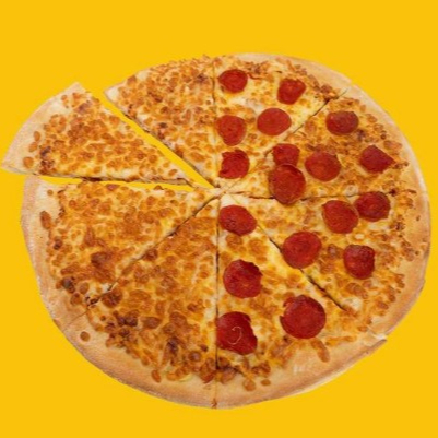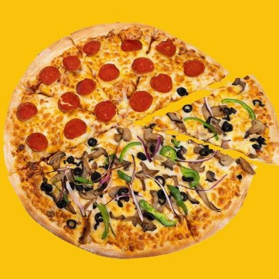 Pizza mitad pepperoni, mitad la especialidad de tu elección.