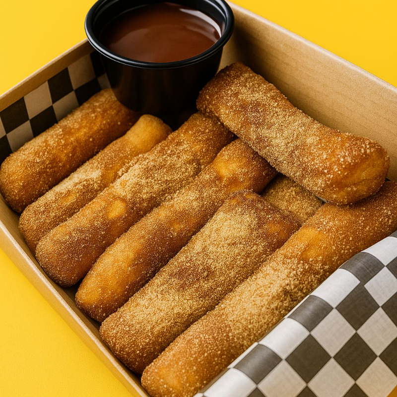 4 Bastones rellenos con crema de avellana, barnizados con mantequilla dulce y canela.