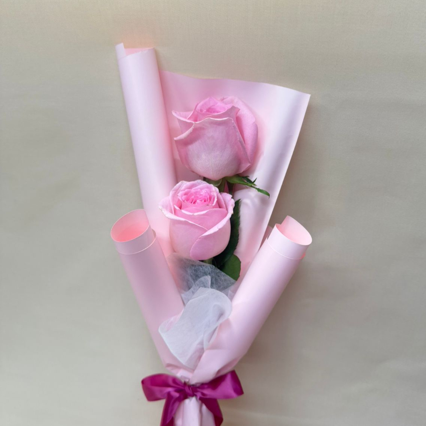 2 Rosa color rosas con papel, tubito de agua y moño.