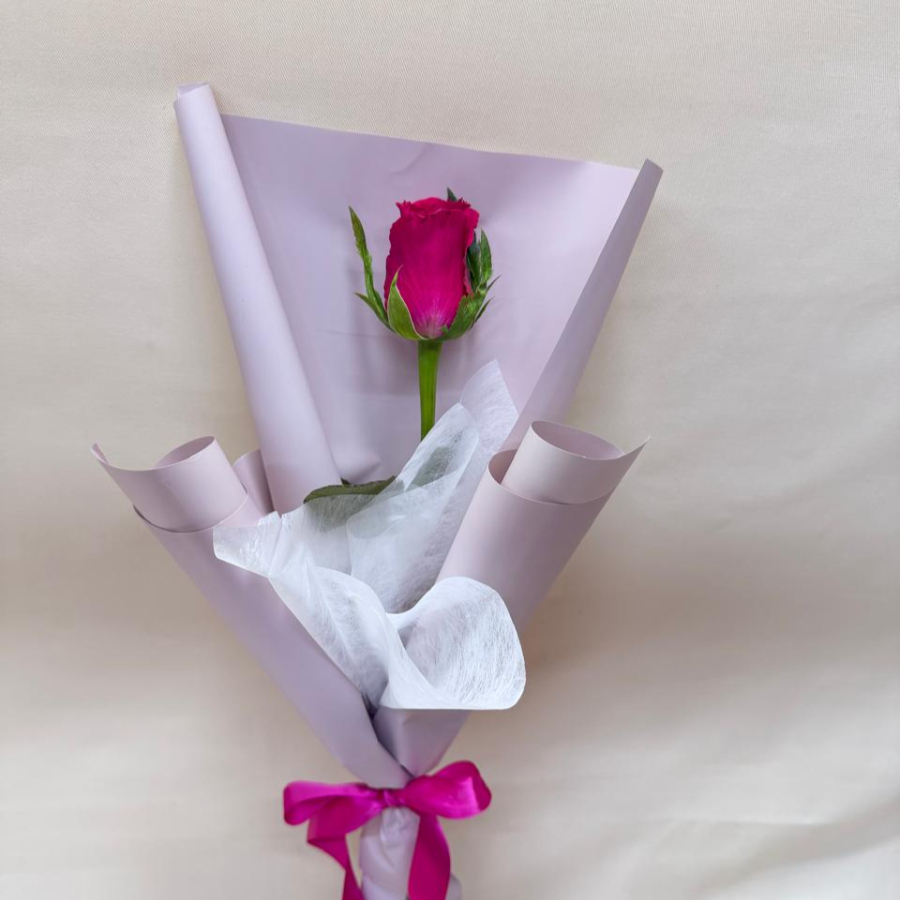 Rosa color rosa con papel, tubito de agua y moño.