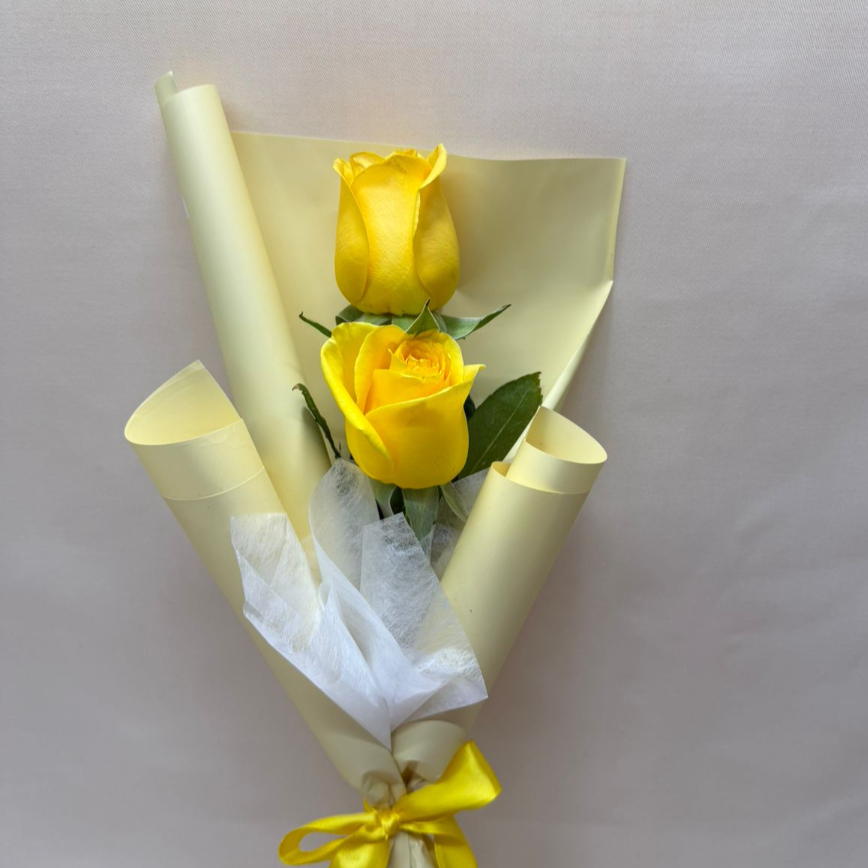 2 Rosa color amarillo con papel, tubito de agua y moño.