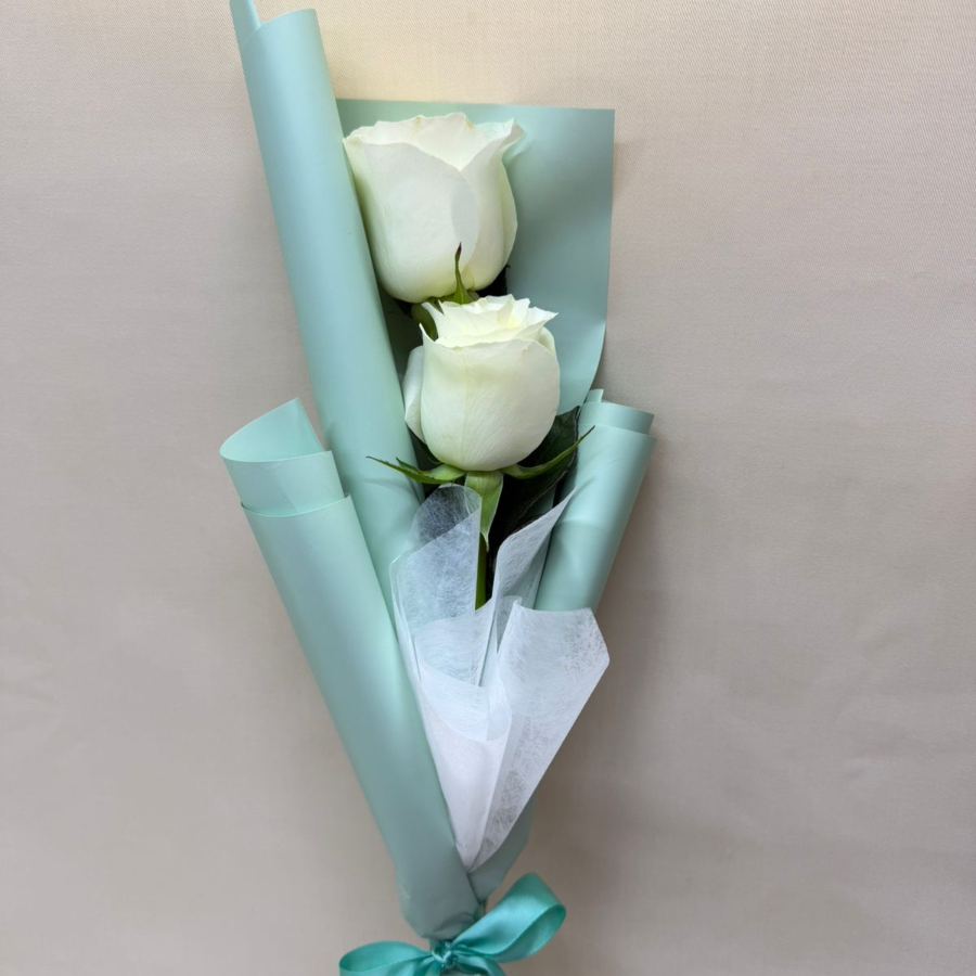 2 Rosa color blanco con papel, tubito de agua y moño.
