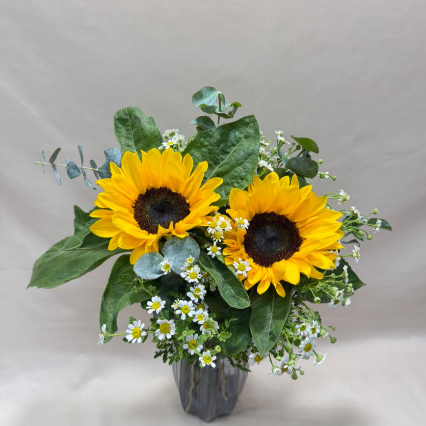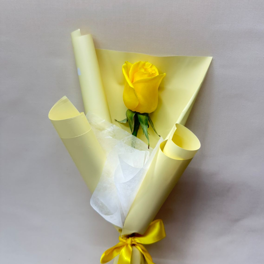 2 Rosa color amarillas con papel, tubito de agua y moño.