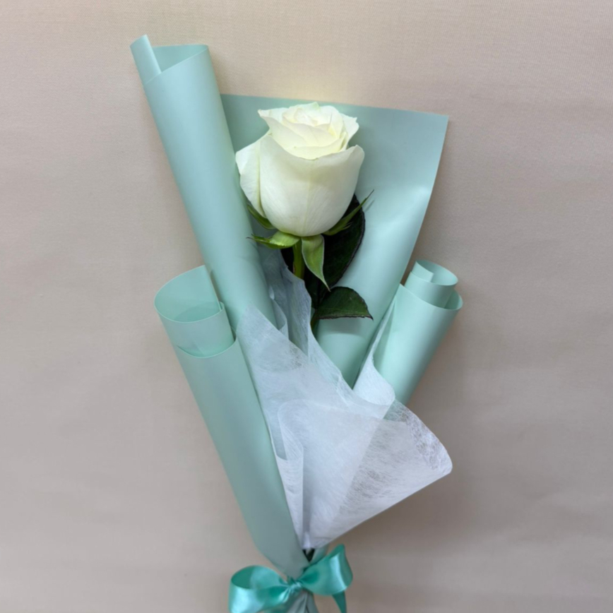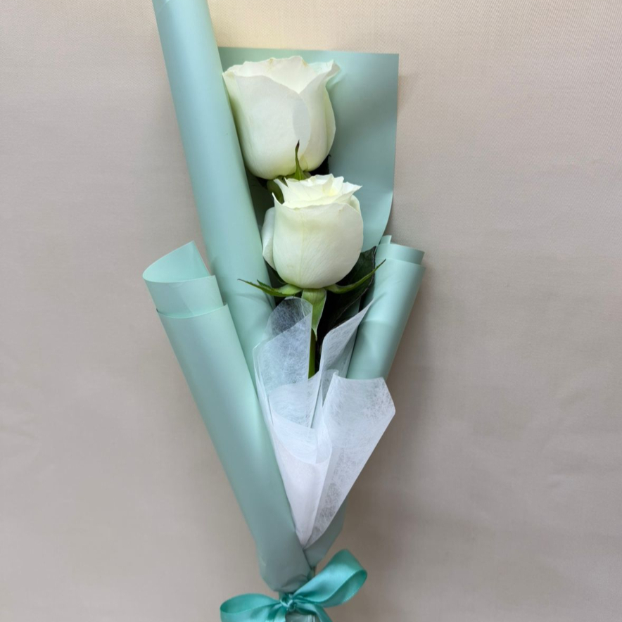 2 Rosa color blancas con papel, tubito de agua y moño.