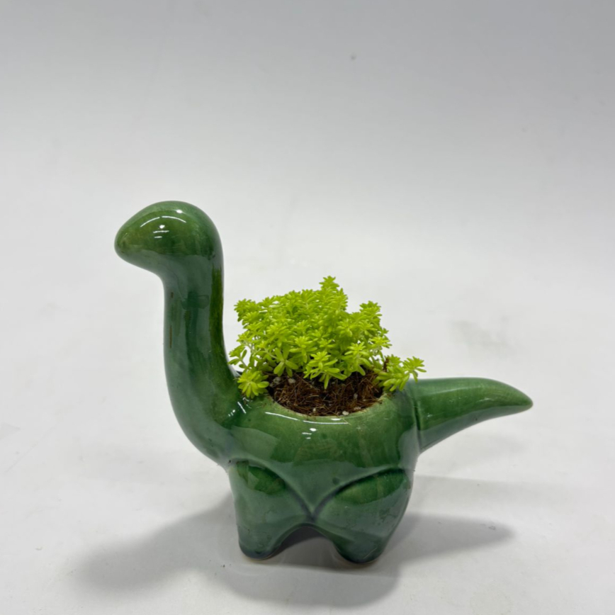Maceta mini en forma de dinosaurio con suculenta Sedum Lineare