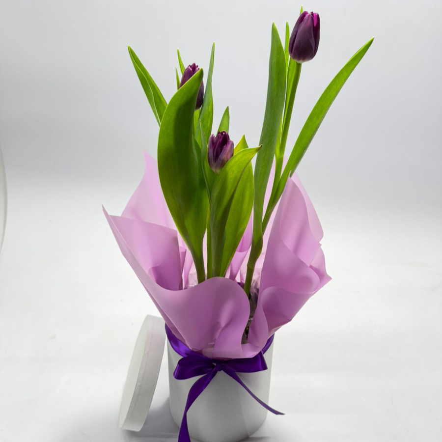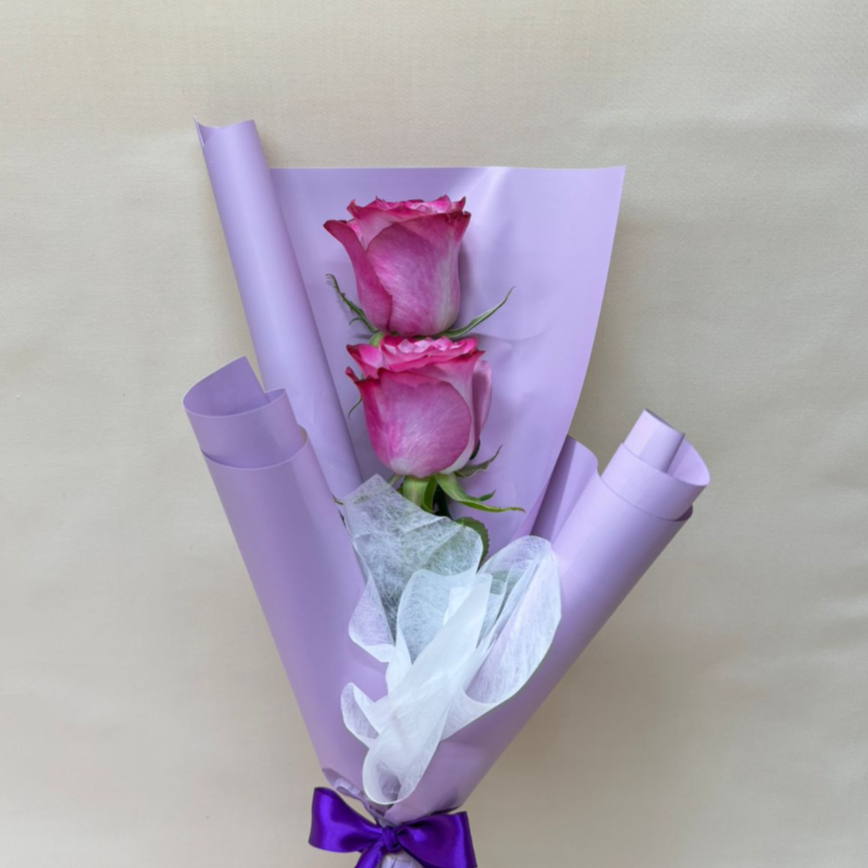 2 Rosa color moradas con papel, tubito de agua y moño.