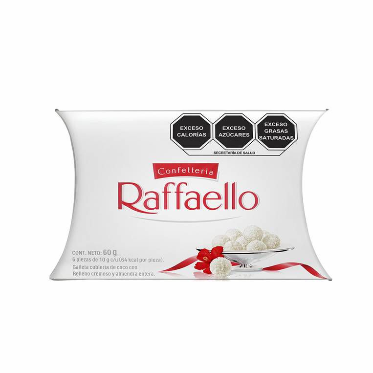 Ferrero Raffaello, galleta crujiente, con sus suaves láminas de coco y un delicado relleno cremoso que esconde en su corazón una deliciosa almendra entera