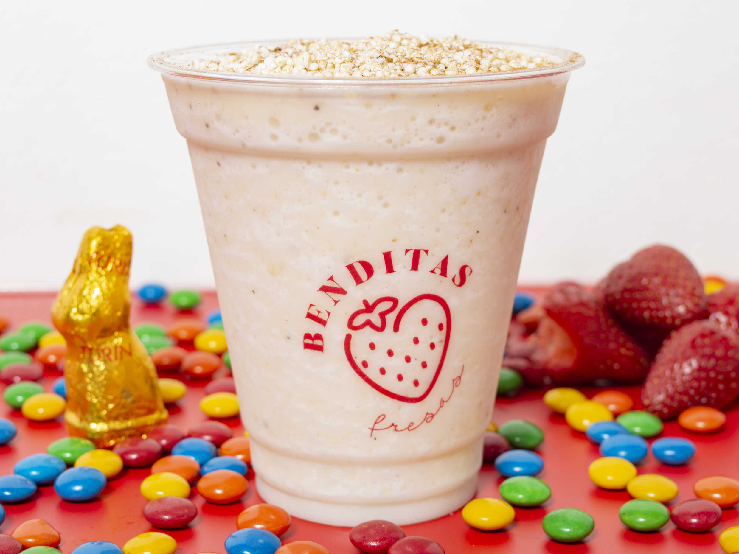 Las consentidas de la casa arma tus fresas a tu antojo, del invernadero a tu vaso de 480 ml de pura fresa bañadas en crema artesanal y 2 toppings de tu elección, con un toque de vainilla y canela en polvo.