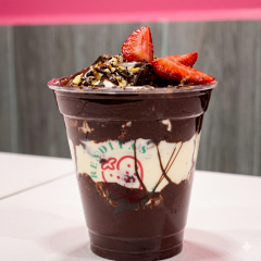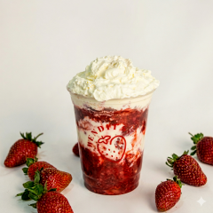 Las consentidas de la casa arma tus fresas a tu antojo, del invernadero a tu vaso. 480ml de pura fresa bañadas en crema artesanal y 2 toppings de tu elección, con un toque de vainilla y canela en polvo.