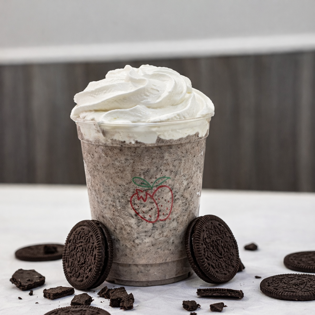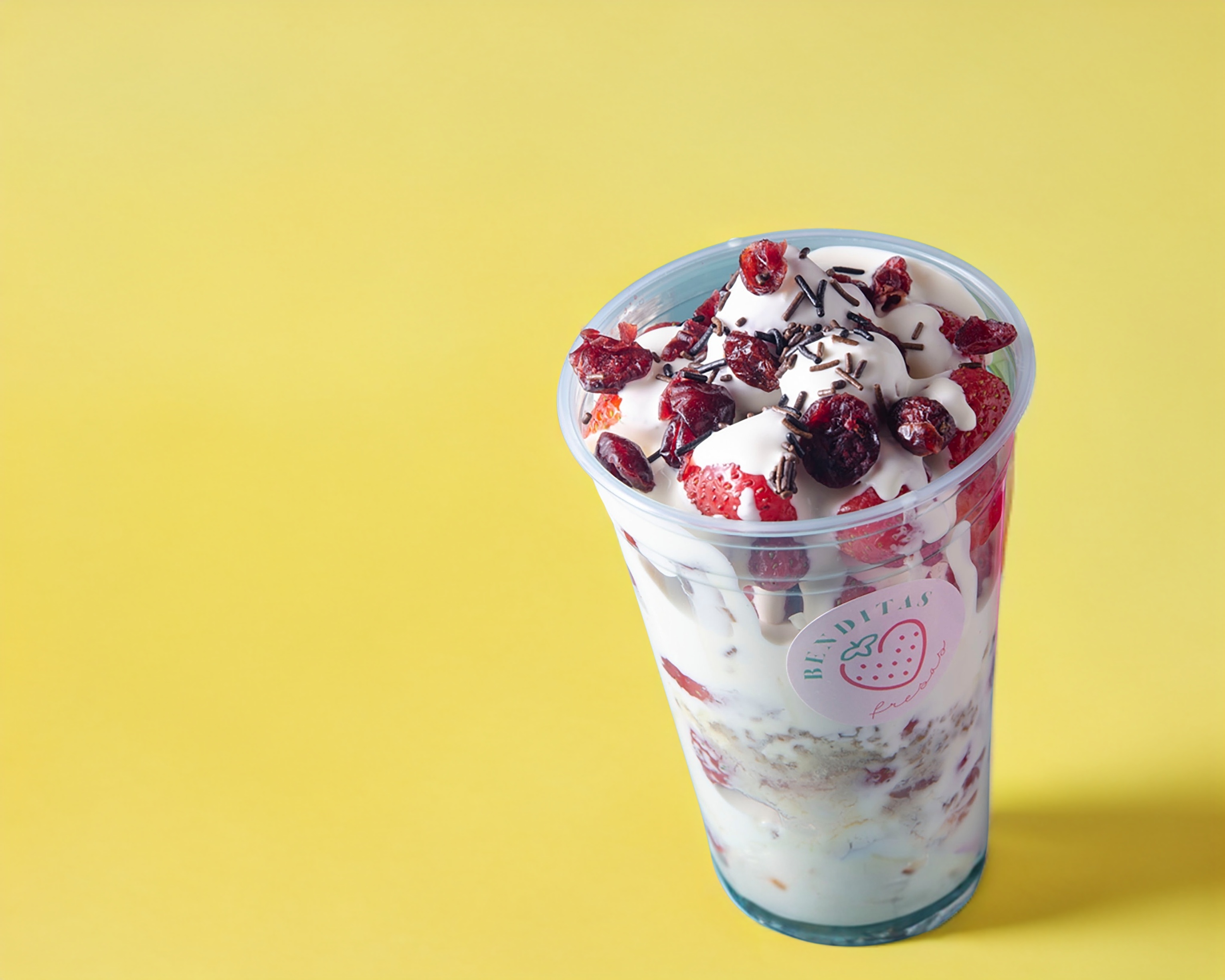 Las consentidas de la casa arma tus fresas a tu antojo, del invernadero a tu vaso. 480ml de pura fresa bañadas en crema artesanal y 2 toppings de tu elección, con un toque de vainilla y canela en polvo.